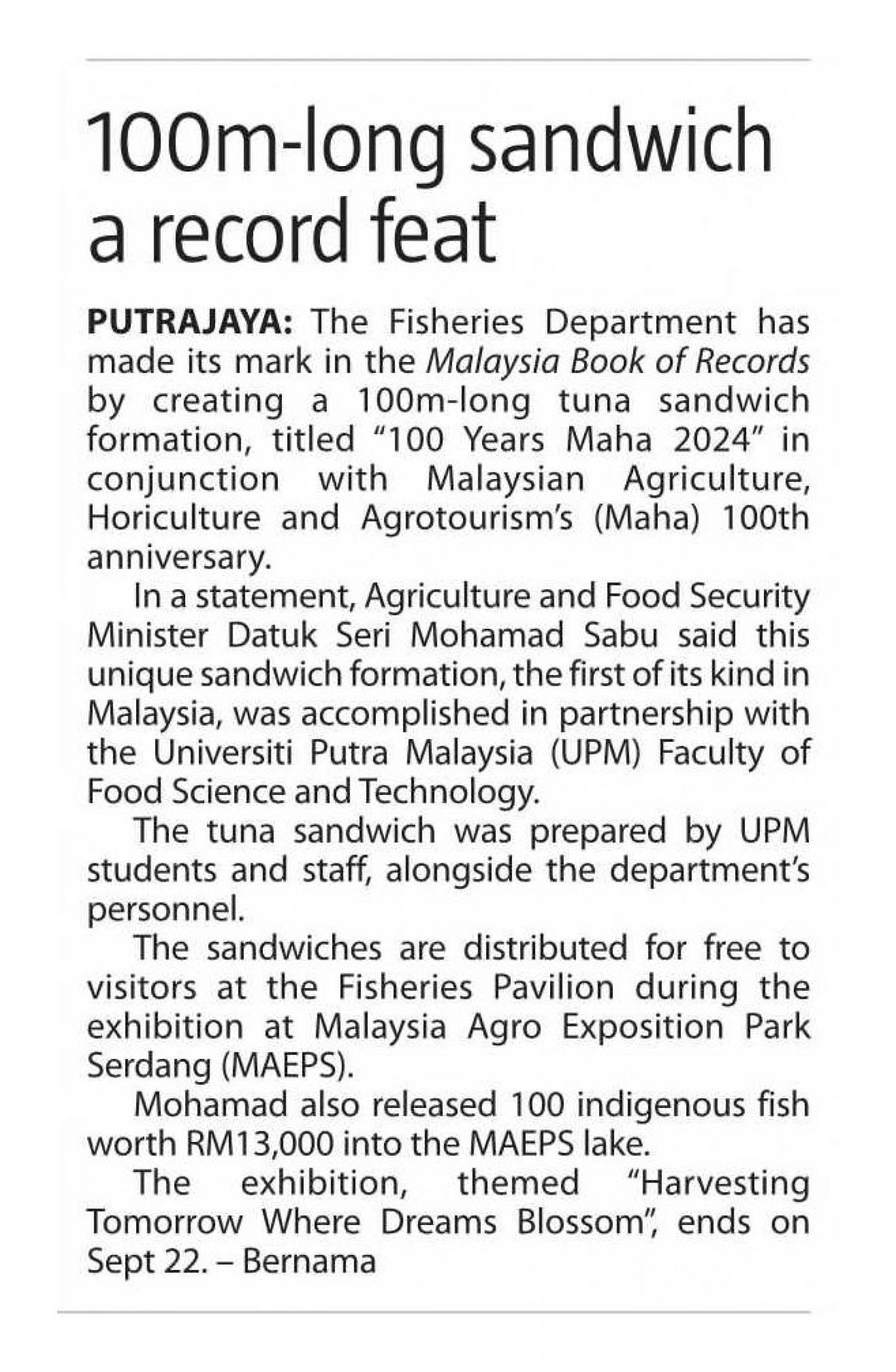 100m-long Sandwich A Record Feat | Universiti Putra Malaysia