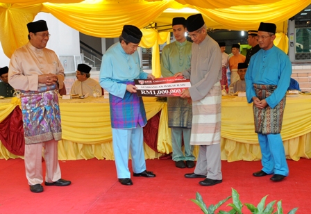 His majesty presented the financial contributions at the special breaking of fast ceremony or Iftar and Tarawih prayer with some 1,000 people comprising UPM staff and members of the local community at the UPM Mosque.