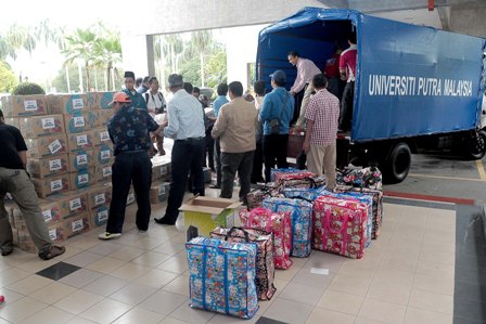 He said all the supplies such as clothings, daily essentials, food and cash, were donated by UPM staff and students.
